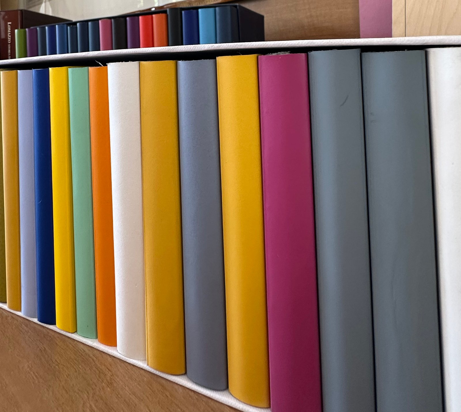 - Cover: Made from 100 % recycled leather fibres derived from industrial leather waste. The fibres are processed into a thin pulp layer and coloured for a luxurious matte finish. Certified REACH and OEKO‑TEX. Available in many colours and textures, including Country, Charme, and Saffiano surface options.