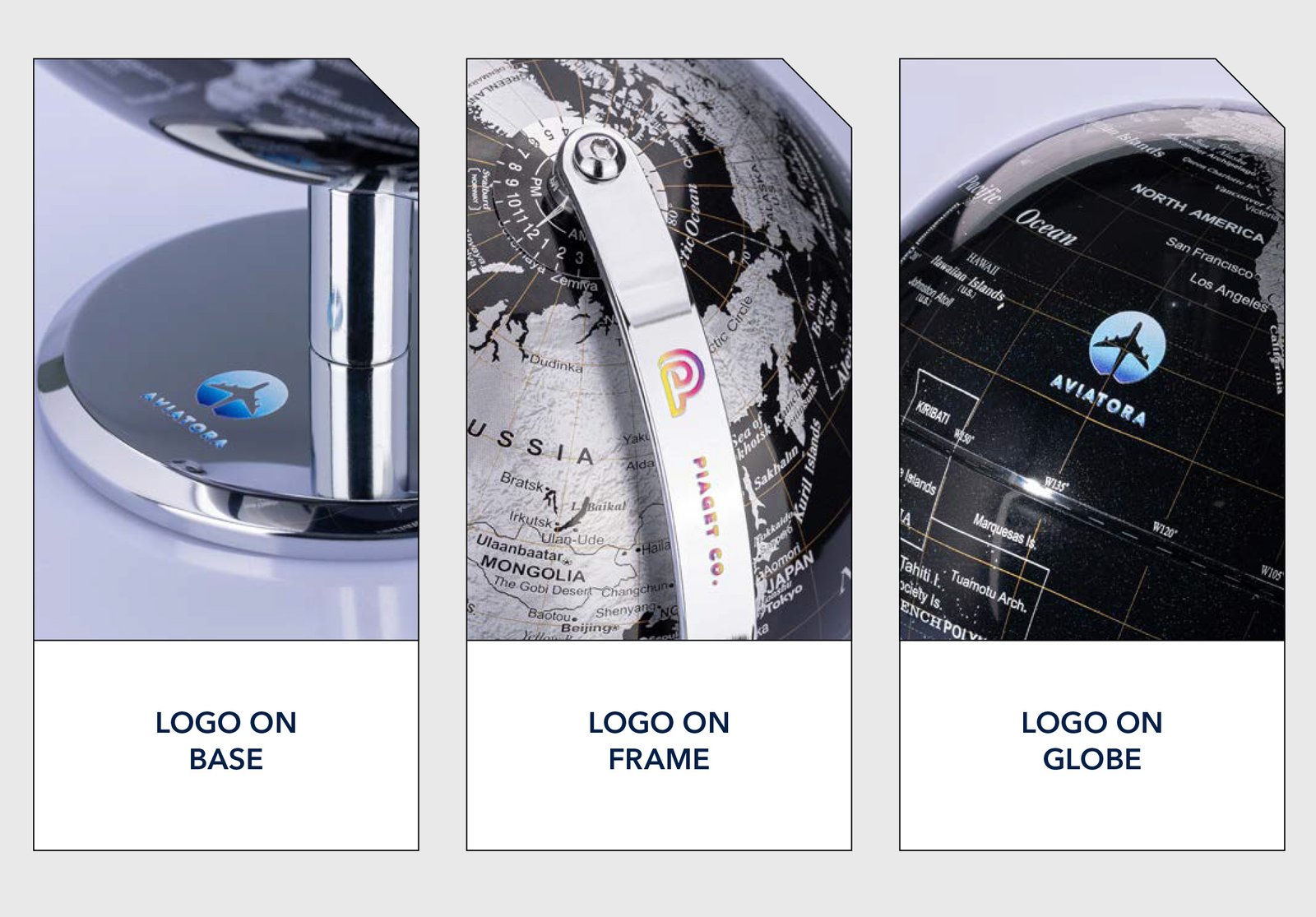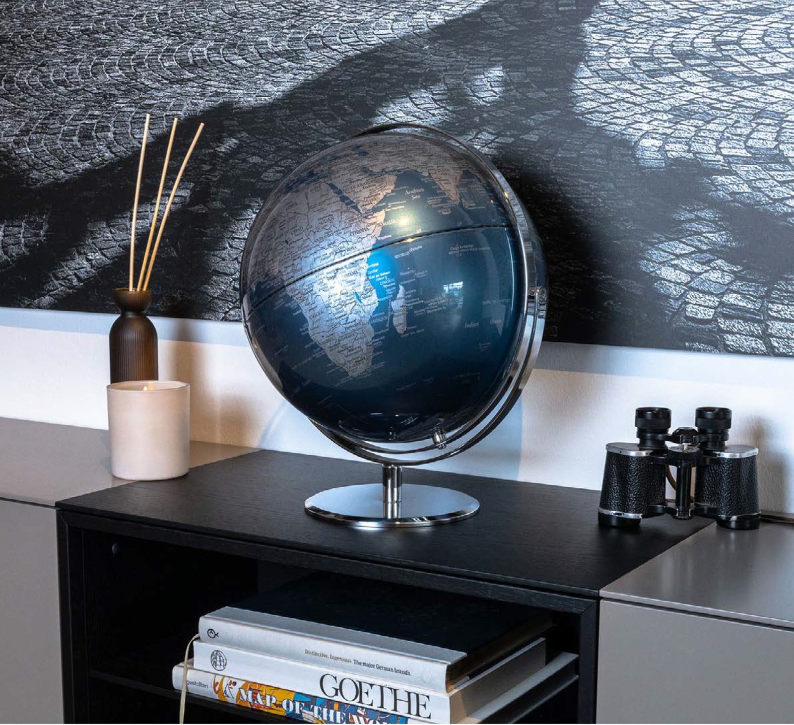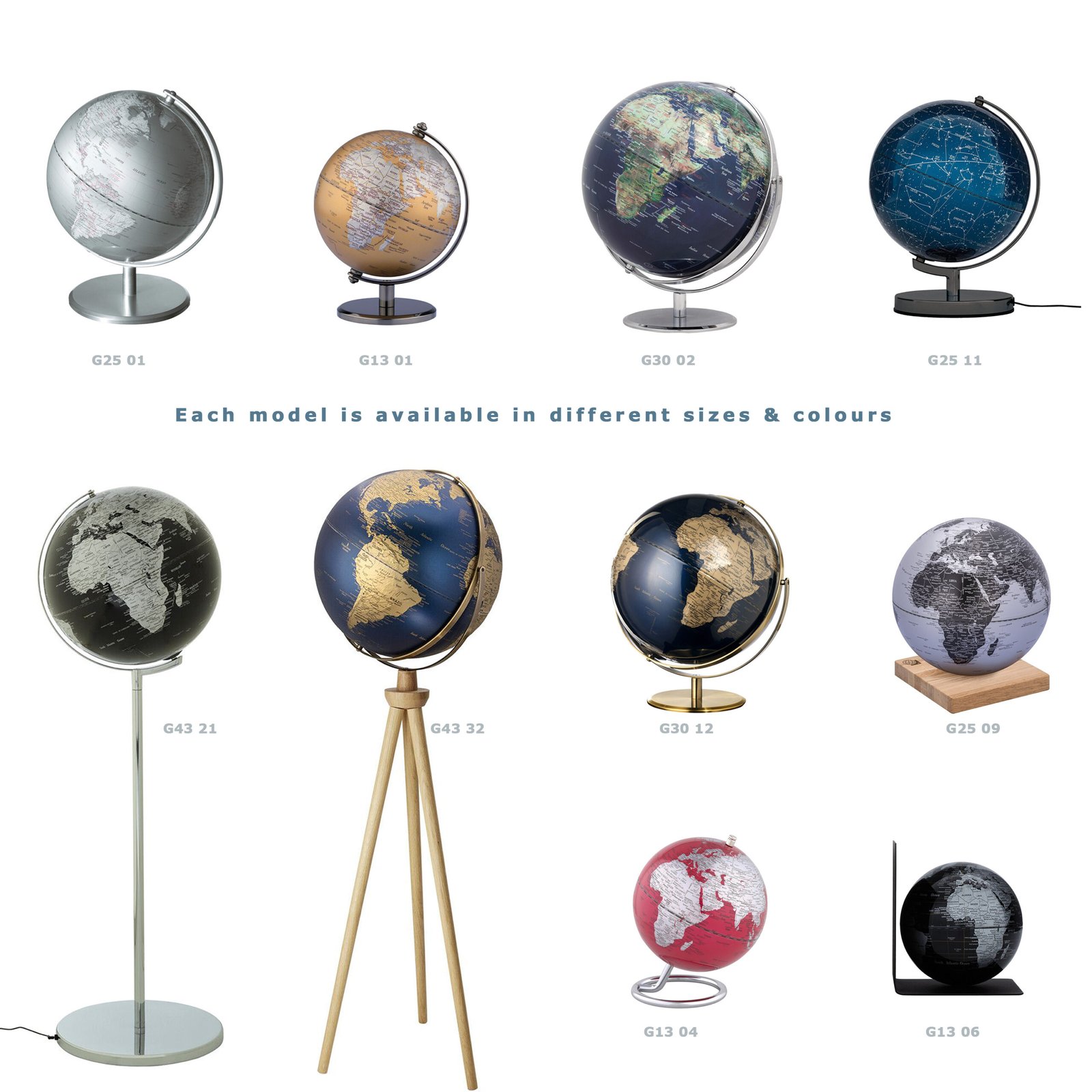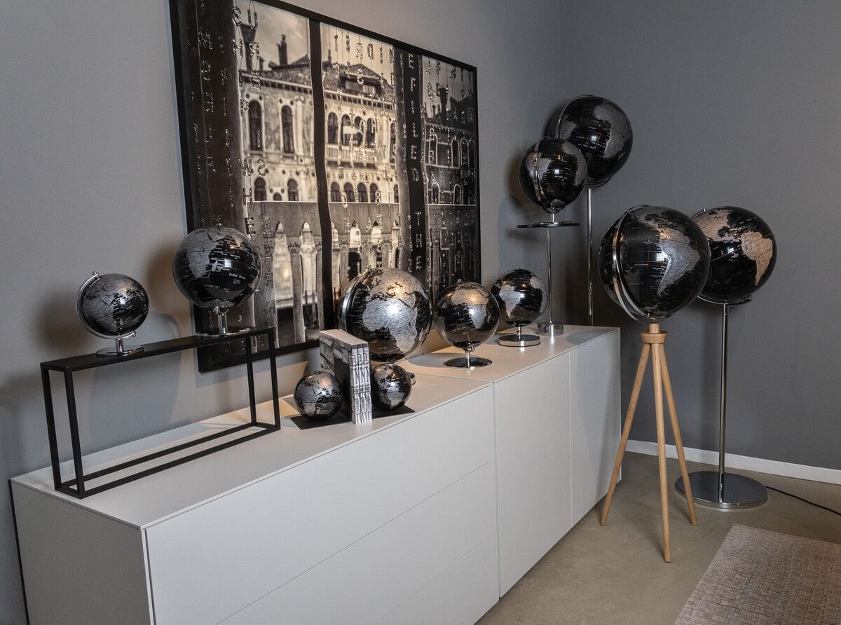 - Features: globes combines aesthetics with functionality. Ideal for those who value design, quality and geographical awareness. Different models and sizes from 13 cm up to 43 cm diameter. High-quality workmanship.