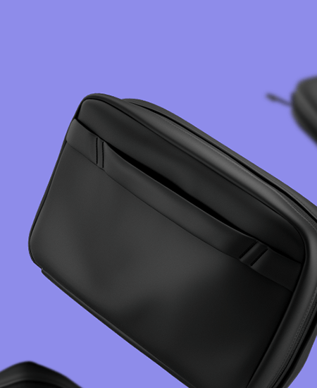 Black tech organizer in waterproof soft-touch PU to keep all your accessories neatly arranged.