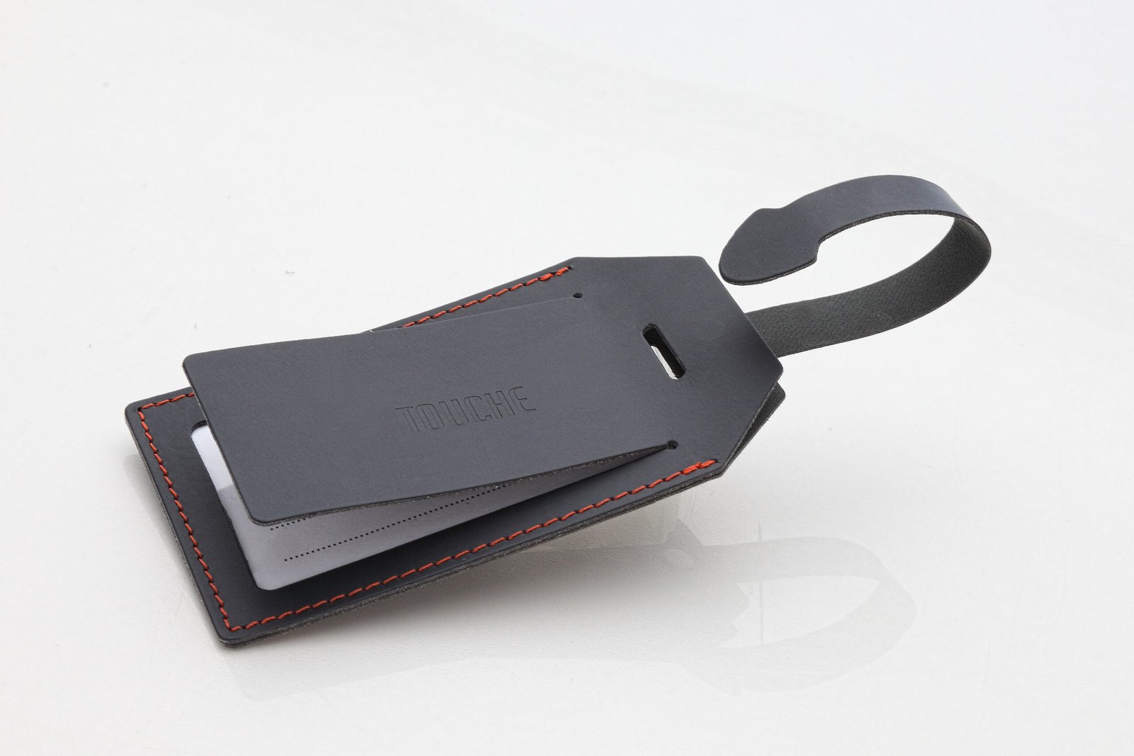 Upgrade your luggage with this secure, self-closing tag in 100% recycled leather fibres.