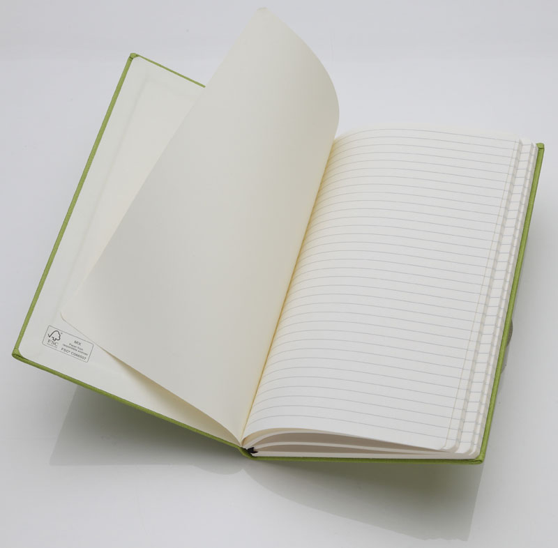Inside with standard FSC paper or recycled paper with standard lines or squares or custom printed.