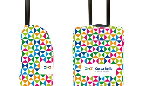 Fully printed luggage cover in lycra polyester and velcro closure. Standard shape and size or custom made on request. From 100 pcs. Made in Italy